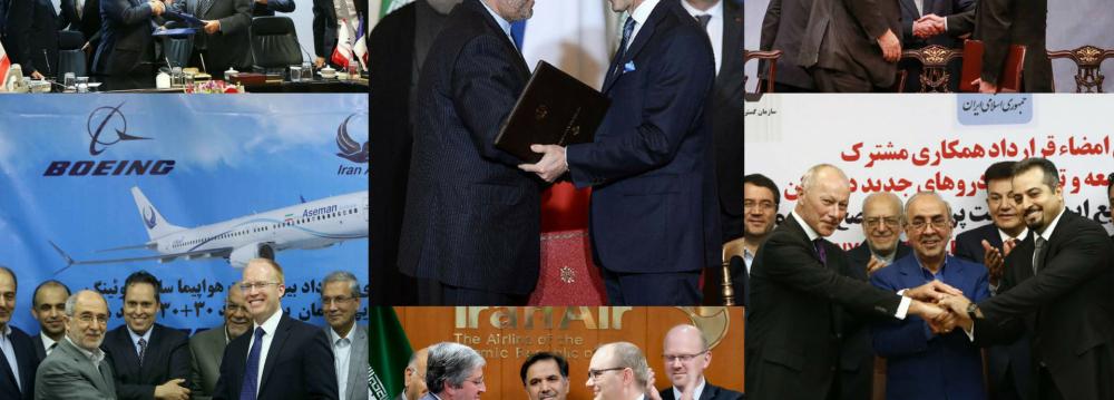 Energy giants like Total and Royal Dutch Shell have lucrative agreements to work with Iran, while Renault has a joint venture to make 150,000 cars a year, and Franco-German planemaker Airbus has reportedly delivered just three out of 100 jets promised to Iran, in a deal worth billions.