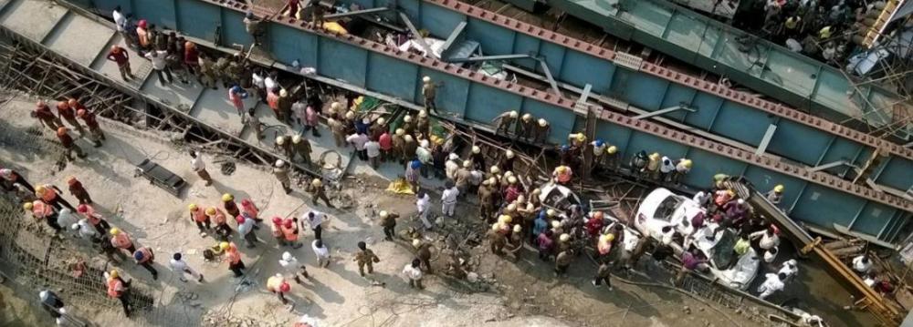 Ninety people were saved after a 100-meter length of the flyover broke off at one end and slammed into pedestrians and vehicles below on a road through a busy commercial district near Girish Park in the eastern city.