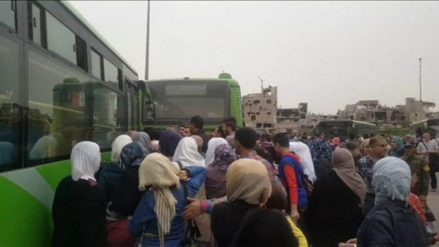 Reports are emerging of the killing of Syrian Christians by the self-styled Islamic State militants in the town of al-Qaryatain. The town was retaken by Russian-backed Syrian forces and their allies earlier in the week. Some 21 Christians were murdered when almost 300 Christians remained in the city after IS captured it last August, said the head of the Syrian Orthodox Church. They included three women, Patriarch Ignatius Aphrem II told the BBC. But despite the murders, he said restoring harmony among faiths remained his goal. “We lived this situation for centuries, we learned how to respect each other, we learned how to live with each other,” said the patriarch. “We can live together again, if we are left alone by others.” The town is now utterly devastated, with street after street and building after building, including a 1,500-year-old Catholic monastery, in ruins. Coaches laid on by the Syrian government have been bringing thousands of residents back to al-Qaryatain and the nearby city of Palmyra.