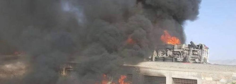 All three vehicles were set ablaze after the collision on the main road linking the capital, Kabul, to the southern city of Kandahar, BBC reported.