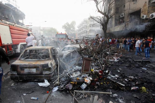 At the scene, firefighters and civilians were seen carrying the dead away, their bodies wrapped in blankets and sheets. Smoke billowed from the shopping center, which was surrounded by the twisted and burned wreckage of cars and market stalls. A group of women were sitting on the pavement, crying for their loved ones.