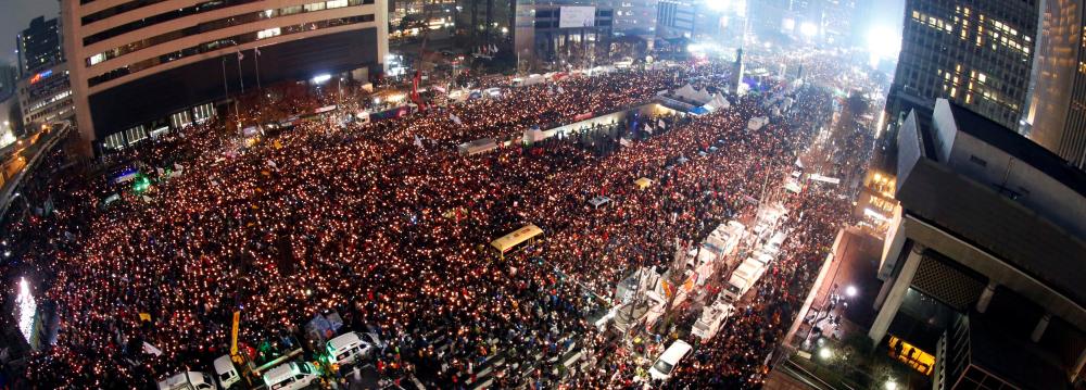 Massive demonstrations have been taking place in Seoul and other cities every Saturday for the past two months, with protesters calling for Park’s immediate departure from office.