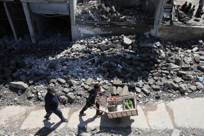 A Reuters TV crew saw dozens of people fleeing their homes near or across the frontline, braving sniper and mortar fire, while a helicopter strafed positions further north.