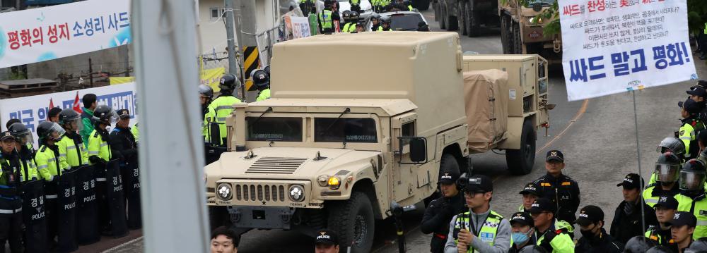 The THAAD system is designed to protect against threats from North Korea. Hundreds of local residents protested against the deployment, as vehicles carrying equipment arrived at the site in the south of the country.