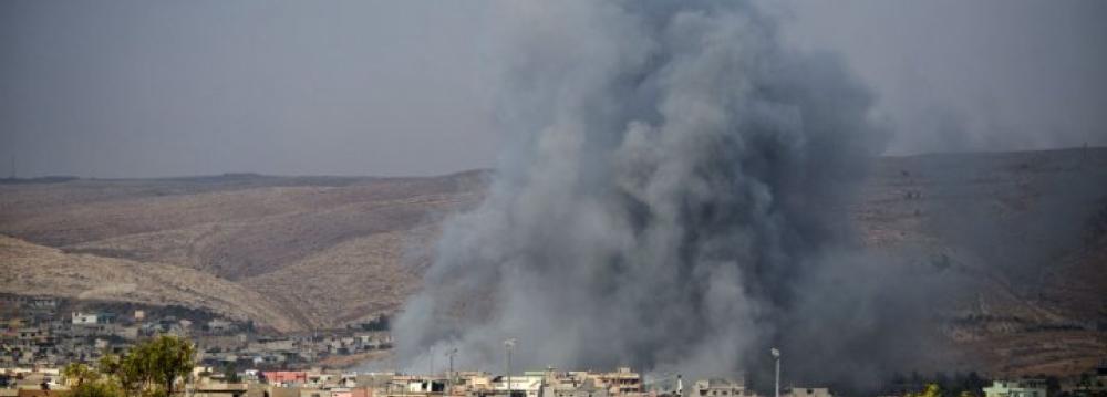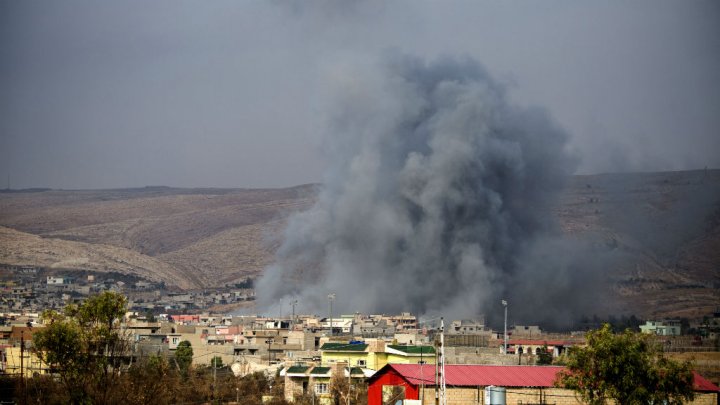 Caption: Smoke billowing over the Iraqi town of Bashiqa after an airstrike in November 2016. (File Photo)