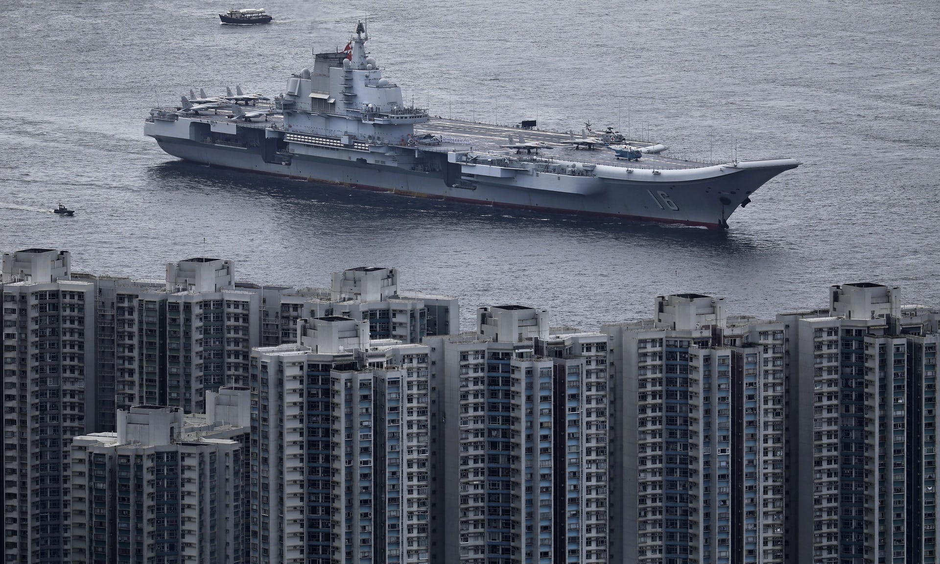It is accompanied by three warships, and will be anchored near Hong Kong’s Tsing Yi island for five days.
