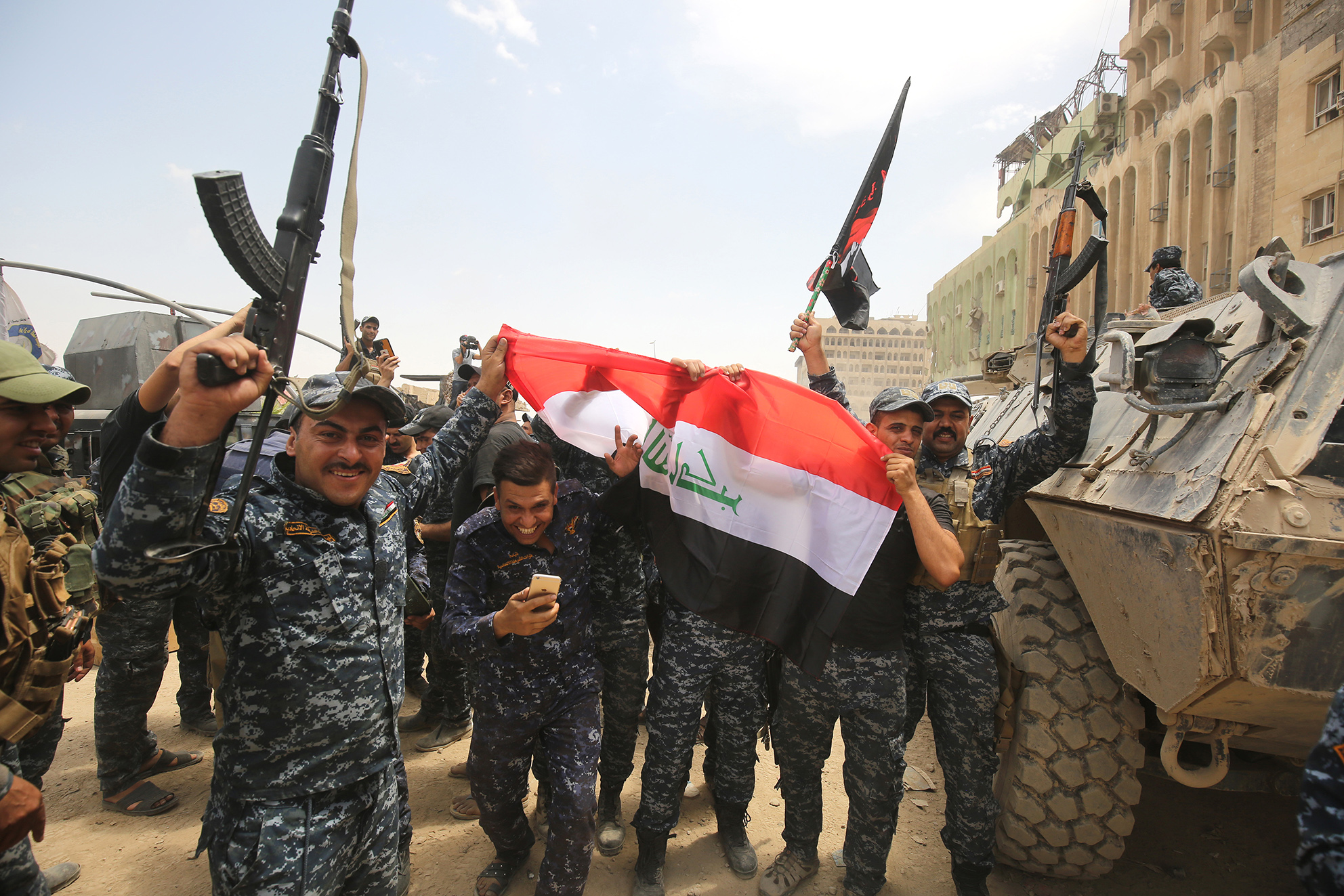 The decaying corpses of militants lay in the narrow streets of the Old City where IS staged a last stand against Iraqi forces backed by a US-led coalition.