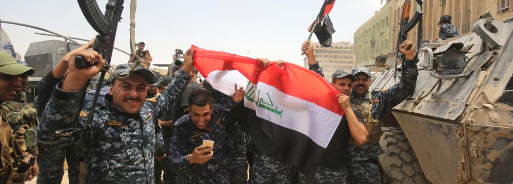 Iraqi Prime Minister Haider al-Abadi arrived in Mosul on Sunday and congratulated the armed forces for their "victory" over the self-styled Islamic State terrorist group after eight months of urban warfare, bringing an end to three years of militants' rule in the city.