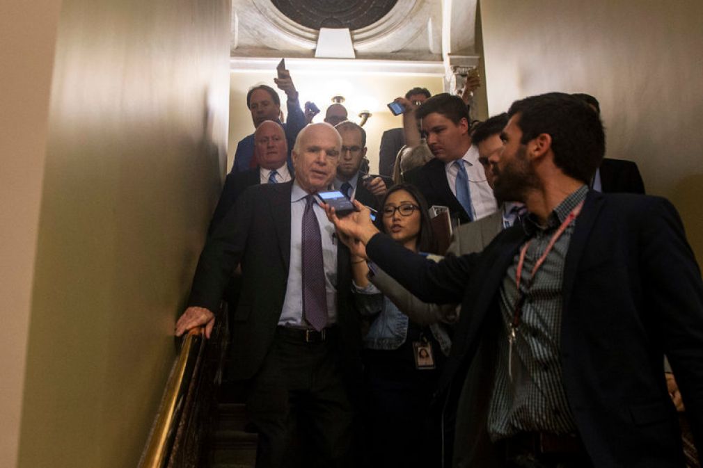 As the vote approached, all eyes in the senate chamber were on McCain. After speaking to Pence and Graham, McCain walked across the floor to tell senate Minority Leader Chuck Schumer and other Democrats that he would vote with them.