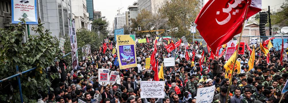 Iranians took to the streets across the country to commemorate the anniversary of the takeover of American Embassy in Tehran 38 years ago.