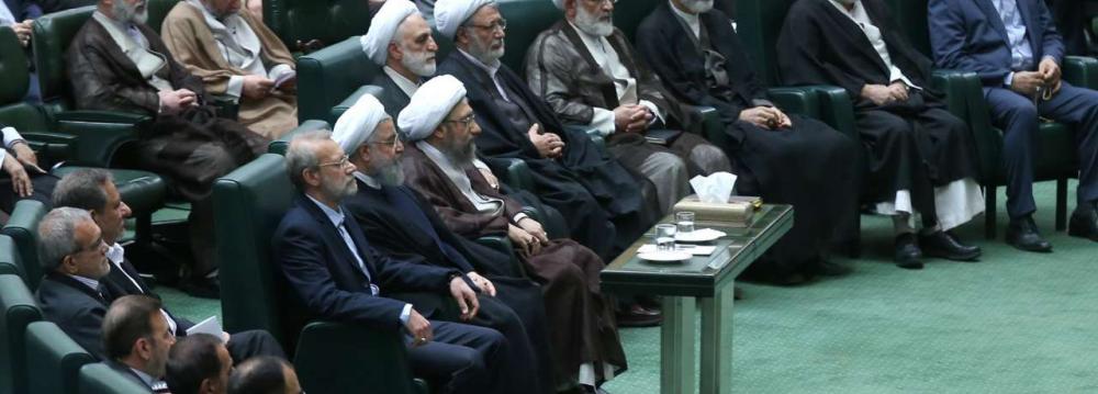 The meeting was hosted by the speaker in which some lawmakers spoke, IRNA reported. No details were available. For the first time, First Vice President Eshaq Jahangiri, Oil Minister Bijan Namdar Zangeneh, Interior Minister Abdolreza Rahmani Fazli  and deputy judiciary chief Gholam-Hossein Mohseni-Ejei, were also present.