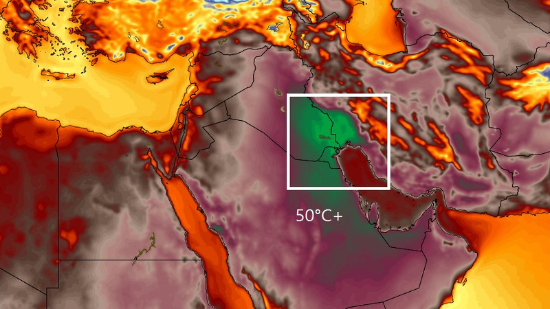 Basra and Baghdad in Iraq recorded 53° and 51° C respectively, while the mercury in Kuwait City, Kuwait, also showed 51° C. Ahvaz, according to the website, recorded 50° C.