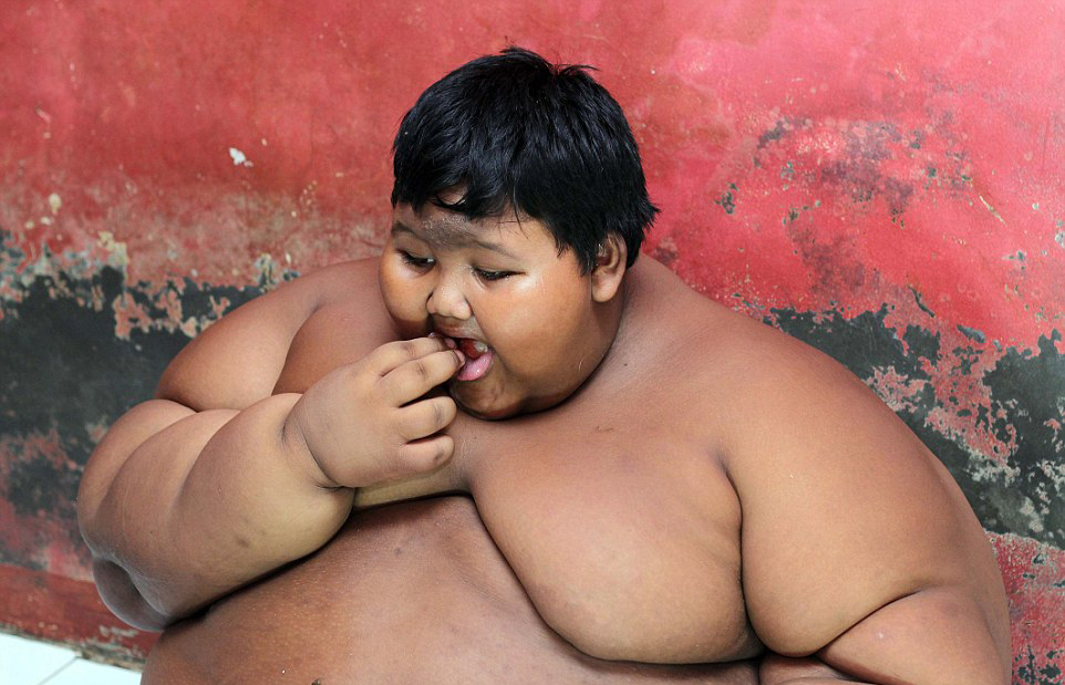 A morbidly obese ten-year-old, who is reduced to wearing just a sarong as clothes do not fit him, has been put on a crash diet over fears he may die. Arya Permana, named the world’s fattest child, weighs 192 kg and eats five meals a day consisting of rice, fish, beef, vegetable soup and Tempeh - a soy patty large enough to feed two adults. Arya, from West Java Province in Indonesia, has dropped out of school as he can no longer walk and his mother Rokayah said he is “perpetually hungry”, reports Daily Mail. “He has an enormous diet and can actually eat meals of two adults at one time,” she said. He only eats and sleeps and when he is not done with both, he jumps into the bathtub and stays there for hours, Rokayah said. Arya was born via natural birth and weighed a normal 3.2 kg.