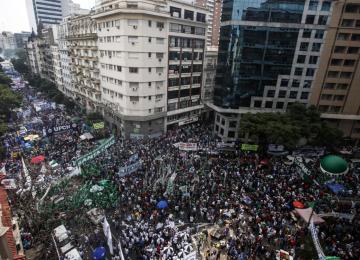 InternationalArgentina’s most powerful unions brought tens of thousands of people into the capital’s streets on Tuesday to protest government job cuts, the lifting of restrictions on imports and other policies…