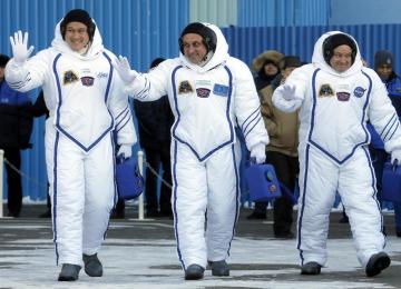 InternationalA trio of US and Japanese astronauts and a Russian cosmonaut blasted off from Kazakhstan on Sunday for a two-day trip to the International Space Station, a NASA TV broadcast showed.